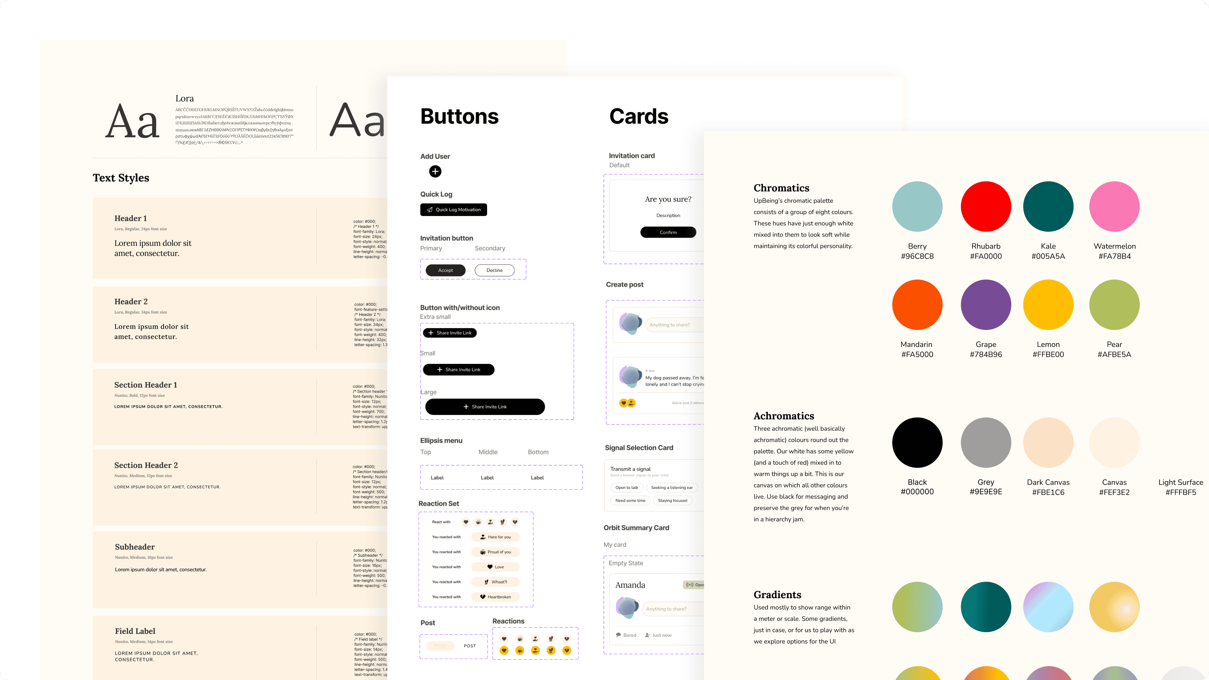 I contributed in the creation and organization of the UpBeing design system within Figma throughout the design process. I meticulously ensured the alignment of brand visuals and language while prioritizing WCAG guideline for accessible design. Once the designs were set, I used the design system to finalize high fidelity design and prototype the interactions.